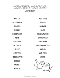According to the old adage, ____ in winter means snow in a week. You can add, remove, replace words as you choose, or click the premade word list. A weather term that describes the warming of the temperature followed by the subsequent melting of snow and ice. Every answer begins with the word snow. appropriate for grades 3 and up. Link to choose a different list. Crossword puzzles, logic puzzles, mazes,. A word bank for the crossword puzzle is also included on a separate page. A vehicle that may be driven across snow. The answers for the crossword puzzle are in the word search, as well as a few other words of the theme so they can be used in combination or separately.why buy this r Another set of worksheets that you can pair with these word puzzles are our winter mad libs found here. 2 people put their presents under this. Something people use to help 5 these keep your hands warm.